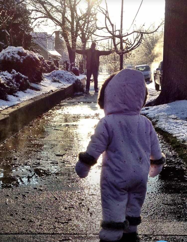 Two of my favorite pictures of my goddaughter; looks like a Peanuts character running on the Moon 😜🤗