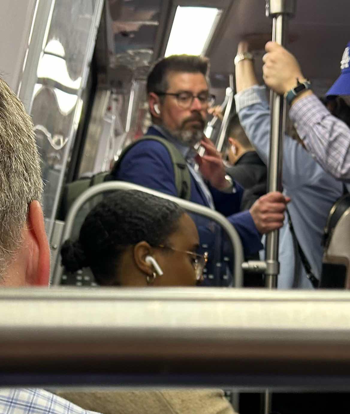 - STANDING next to fucking bag taking up seat